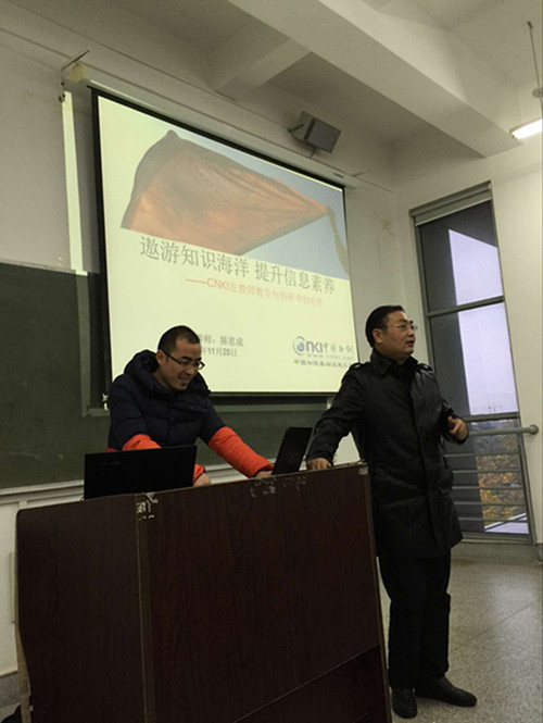 讲座共两部分。首先由同方知网(北京)高喜筠讲师结合具体案例演示和讲解中国知网“大学生论文检测系统(PMLC)”的功能及使用方法。讲座第二部分由陈思成讲师介绍“CNKI中国知网在教师教学、学习与科研中的应用”。在互动环节,教师踊跃提问,气氛热烈。
