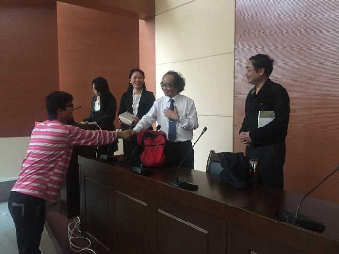 在历时九十分钟的讲座中,陈义海教授以他诗人的特质,丰厚的学养,旁征博引,纵古论今,精彩的演讲和独到的见解引领广大师生领略诗歌之美。他以舒婷、余光中、徐志摩、雪莱等多名中外诗人和自己的创作为例,通过现场示范中英文朗读和诵读,详细讲解诗歌的意象、语言和韵律等。在讲到新诗鉴赏时,陈教授特别强调了两点:一是诗歌鉴赏要从感性的愉悦上升到理性的清晰——既能被美感动,又要知道它美在哪里,二是诗歌鉴赏丰富的想象力展开对对意象的解读——以心观物、化心为物;在讲到新诗诵读时,他指出对诗歌的朗诵则是对诗歌作品的二度创作,要求同学们在读诗的过程中一定要融入自己的情感,只有这样,才能打动人。他边讲解边示范,语言生动富有激情,让在场师生如浴甘霖,如沐春风,博得了现场一阵又一阵热烈的掌声,引发一次又一次情感的共鸣。讲座结束后,陈教授为部分文学爱好者签名赠书,并合影留念。