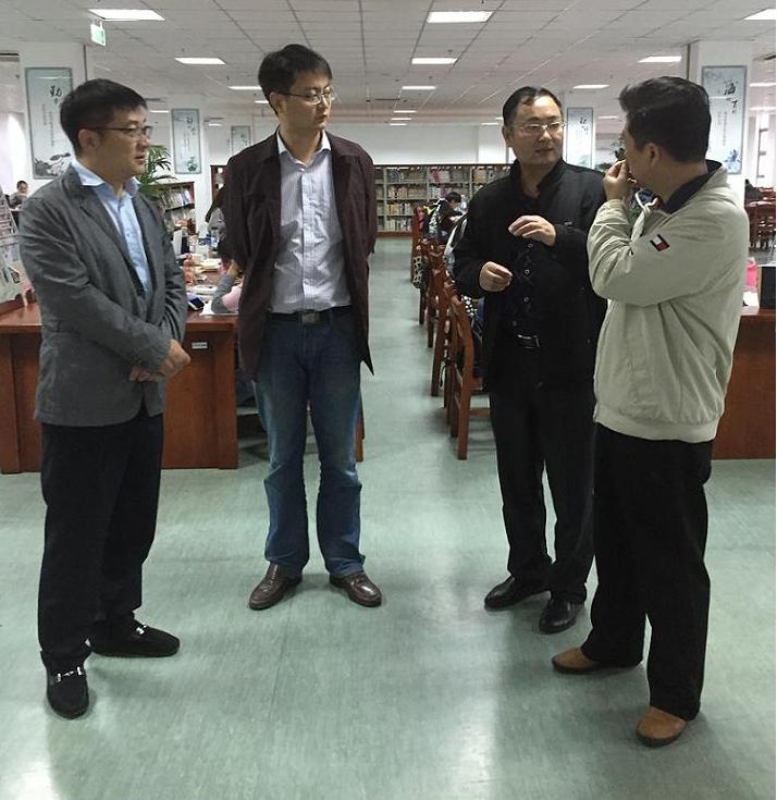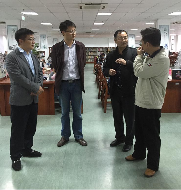 交流会上,薛建明一行观看了我校宣传片,随后许士群详细介绍了我馆馆舍分布、文化氛围营造、馆藏资源建设、阅读推广及服务人员配置等情况。薛建明馆长介绍了淮阴工学院图书馆的基本概况,他表示当前的工作重心在于物理空间改造及电子资源平台建设,分享了科研小间、艺术展厅、密集书库、3D影视区等交流空间吸引师生读者、提升图书馆人气的成功经验。双方还就高校图书馆未来电子资源建设和情报信息咨询服务等问题进行了深入交流。(文/王笑蕾,图/陈亚兰)
