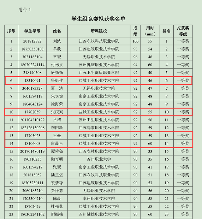 近日,2019年江苏省高职院校信息素养大赛决赛在无锡职业技术学院举行。本次比赛经江苏省教育厅批准,由江苏省高校图工委高职高专图书馆专业建设委员会主办,共有来自全省30所高职院校的140名选手参加了角逐。我校选派的5名学生在图书馆馆长许士群、馆员陈亚兰、张建兰的精心指导下,在本次大赛中表现特别抢眼,取得了5个一等奖的优异成绩,在获得一等奖的前15名选手中我校占据4席,是比赛成绩最为突出的学校之一。荣获大赛一等奖学生分别是:机电工程学院 云计算1812鲁街建,建筑工程学院 造价1721班张庆爽,纺织服装学院 服工1811班白晨肖 ,建筑工程学院道桥1711班王垒和造价1811班桂强燕。其中,鲁街建和张庆爽两位同学成功入围国赛,代表江苏省参加2019年全国高职院校信息素养大赛决赛网络竞赛。此外,我校被授予优秀组织奖,张建兰获得“优秀指导老师”称号。